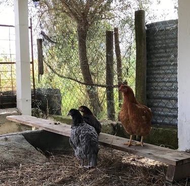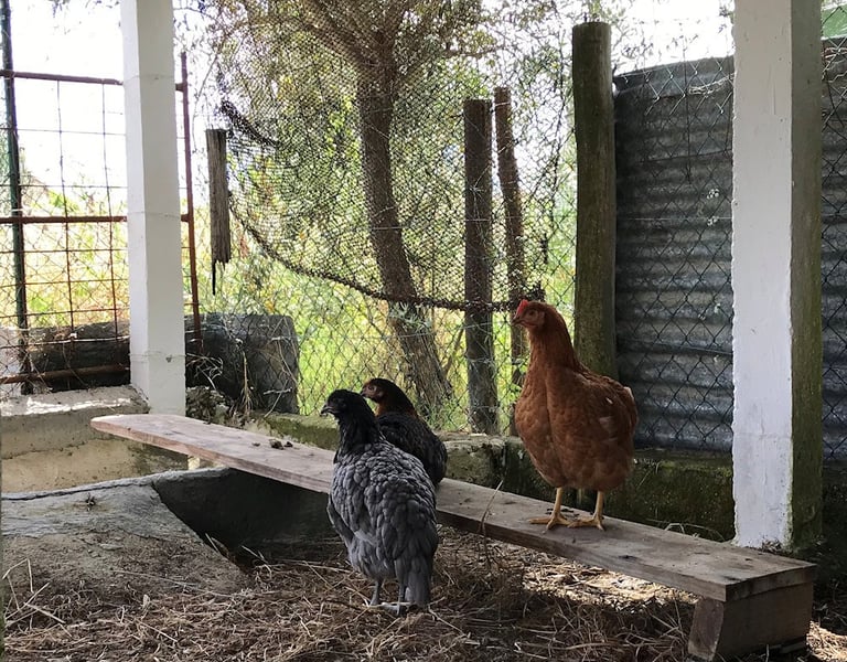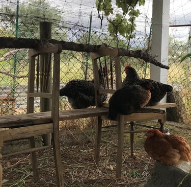 Onze kippen: Bep, Doetje, Flora, Katinka en Pippi.